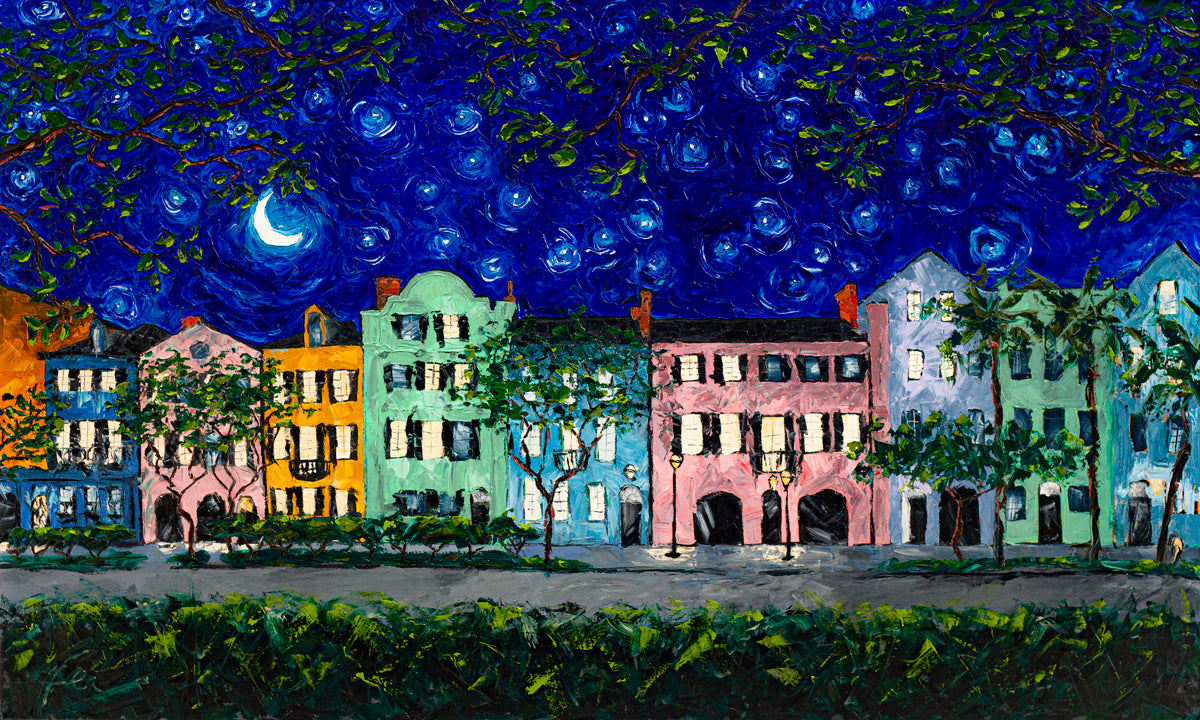 Rainbow Row at Night - Print on Paper
